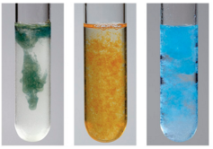 on a réalisé un test de reconnaissance pour identifier des ions cuivre, fer II et fer III.