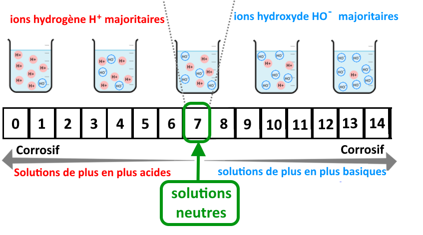 Solutions différentes mais dangers similaires : les solutions concentrées acides et basiques sont corrosives, irritantes utiliser des protections (gants, lunettes, blouse) ; diluer les solutions concentrées (le pH se rapproche alors de 7) ; ne pas rejeter dans l’environnement.