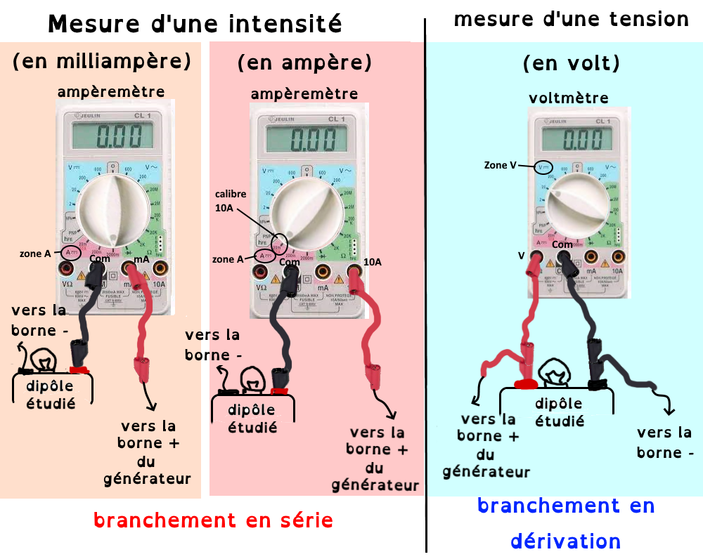 Cliquer ici pour des vidéos explicatives sur l’utilisation d’un multimètre